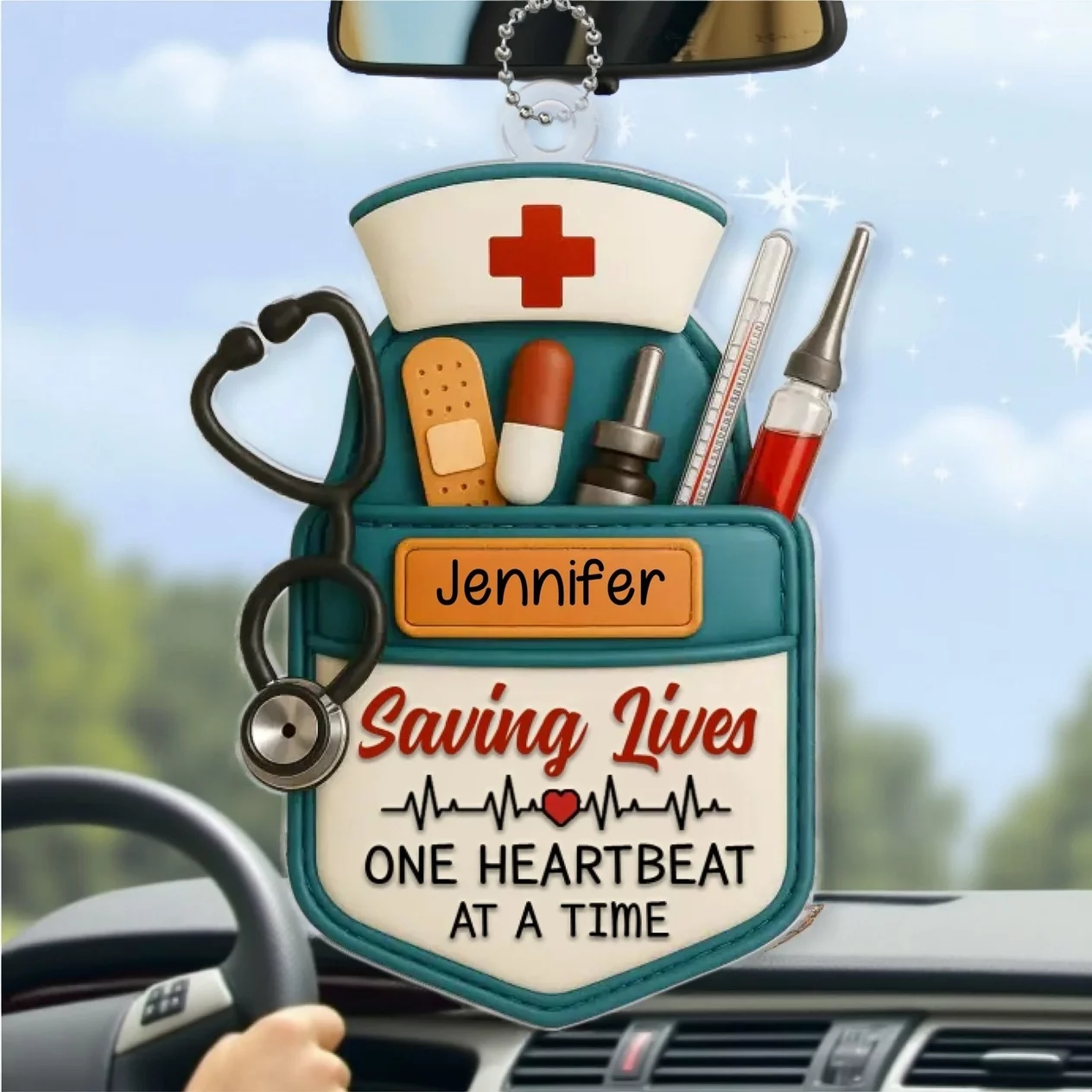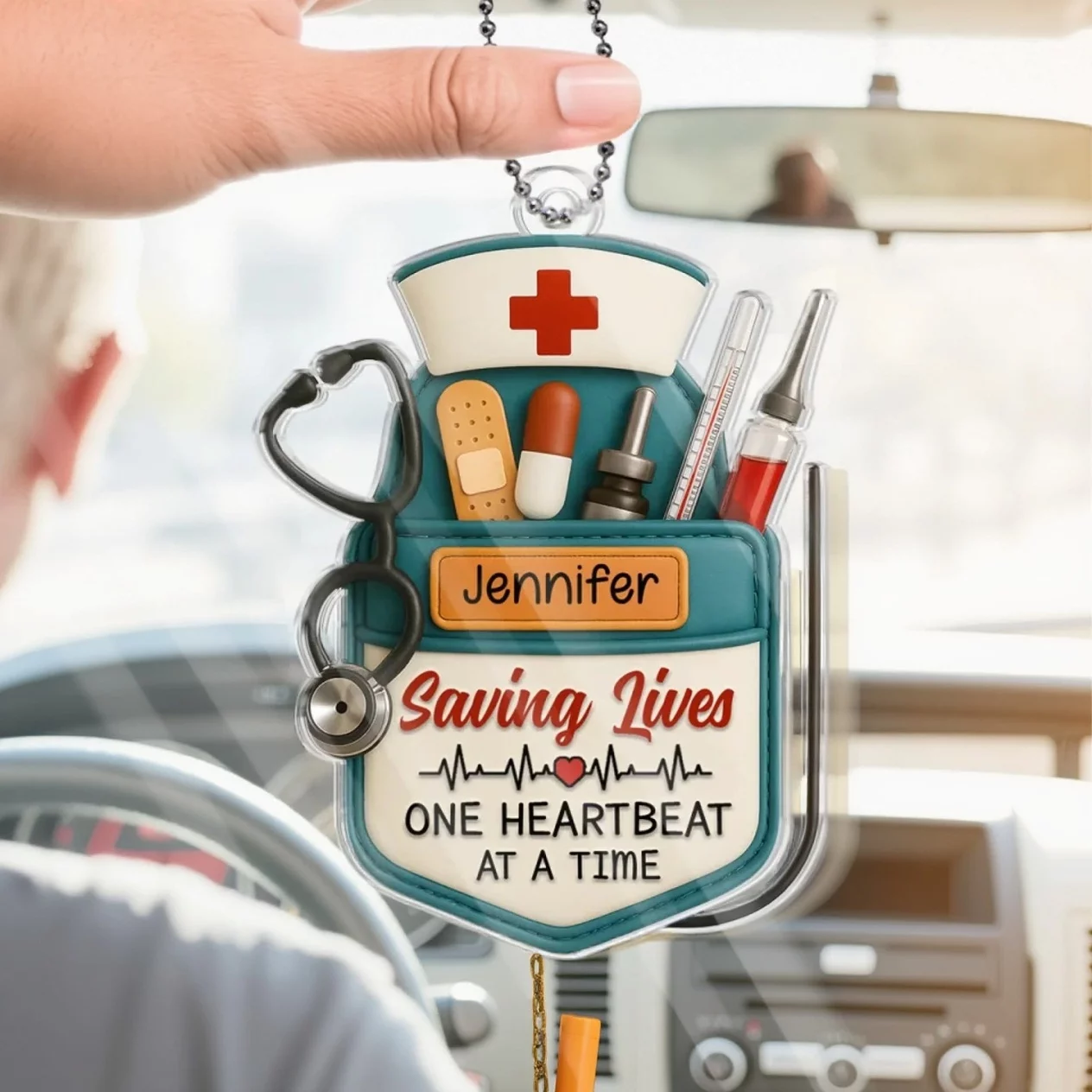 A Beat of Hope, A Chance at Life – Nurse Car Ornament – Acrylic Shaped Design – Thank You Gift for Medical Professionals