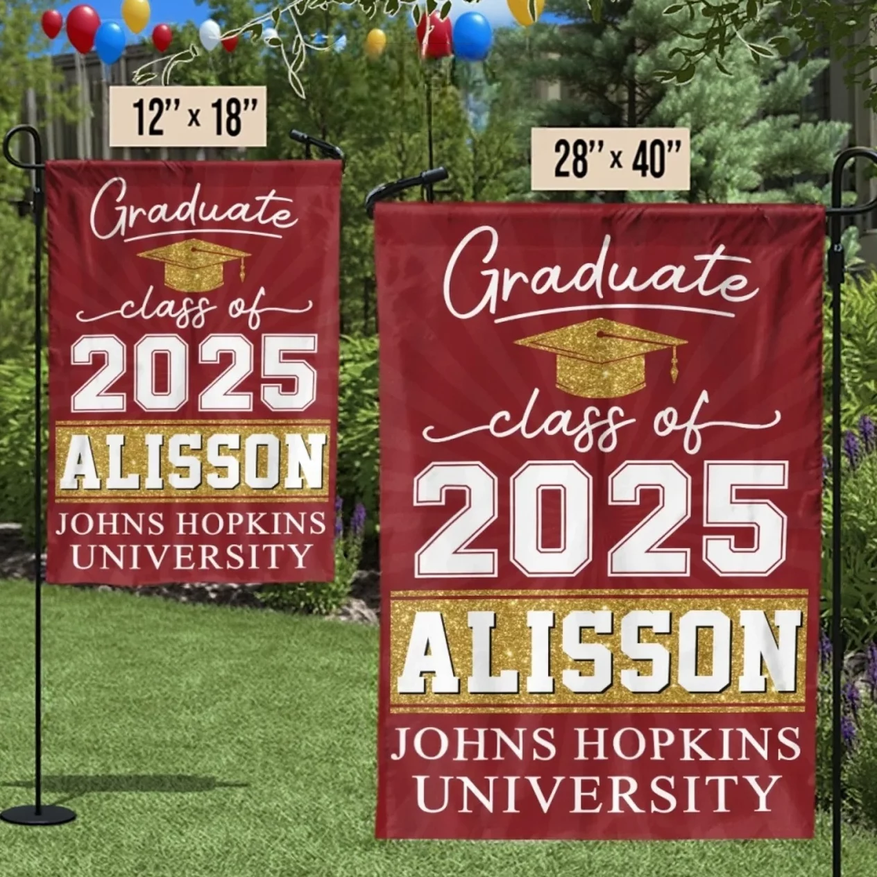 • Garden flag: 12×18 in (29×44 cm).
