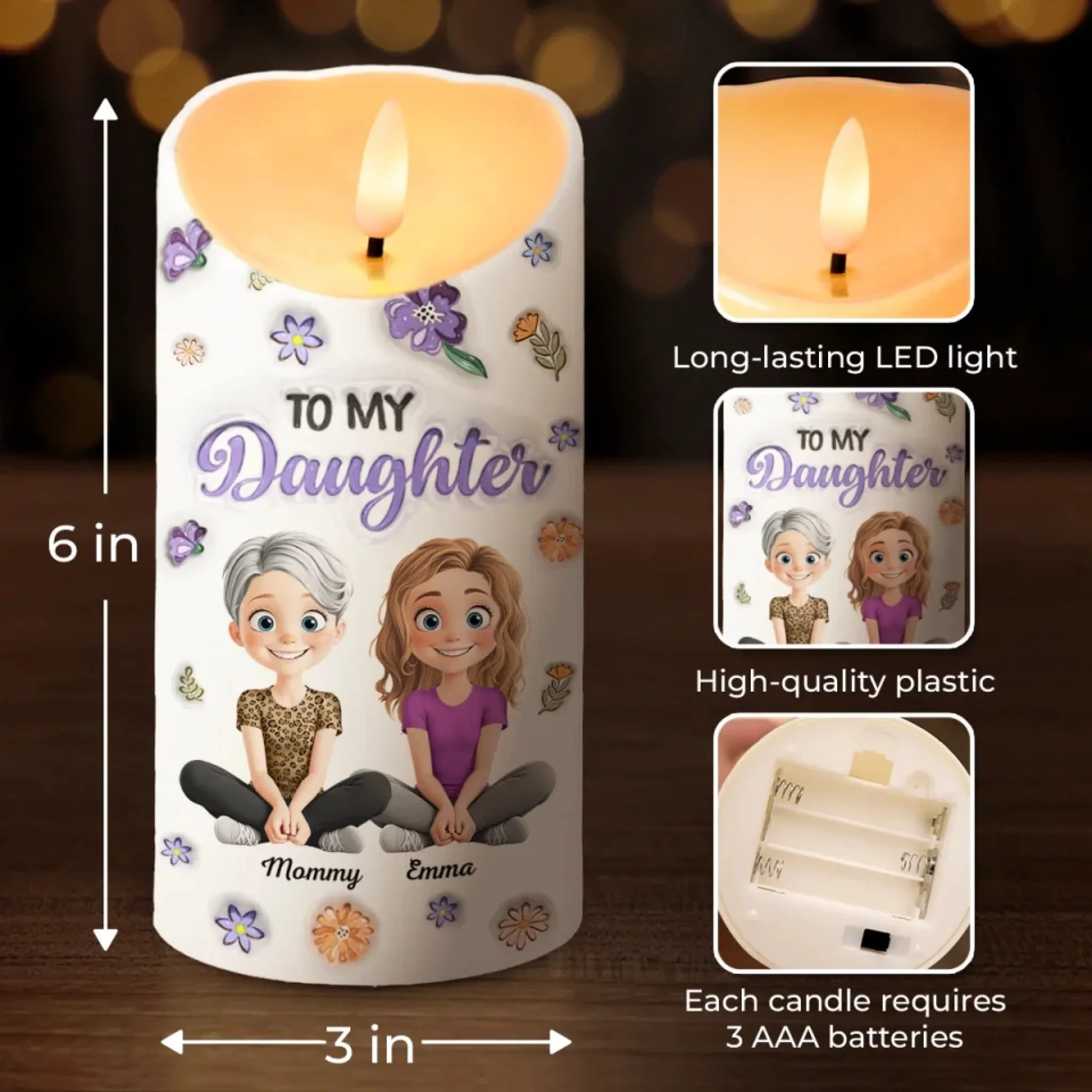 Anywhere with Mom Feels Like Home – Custom Family 3D Puff-Print LED Candle – Heartfelt Mother’s Day Gift, For Mother, Grandma