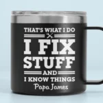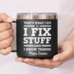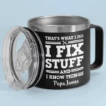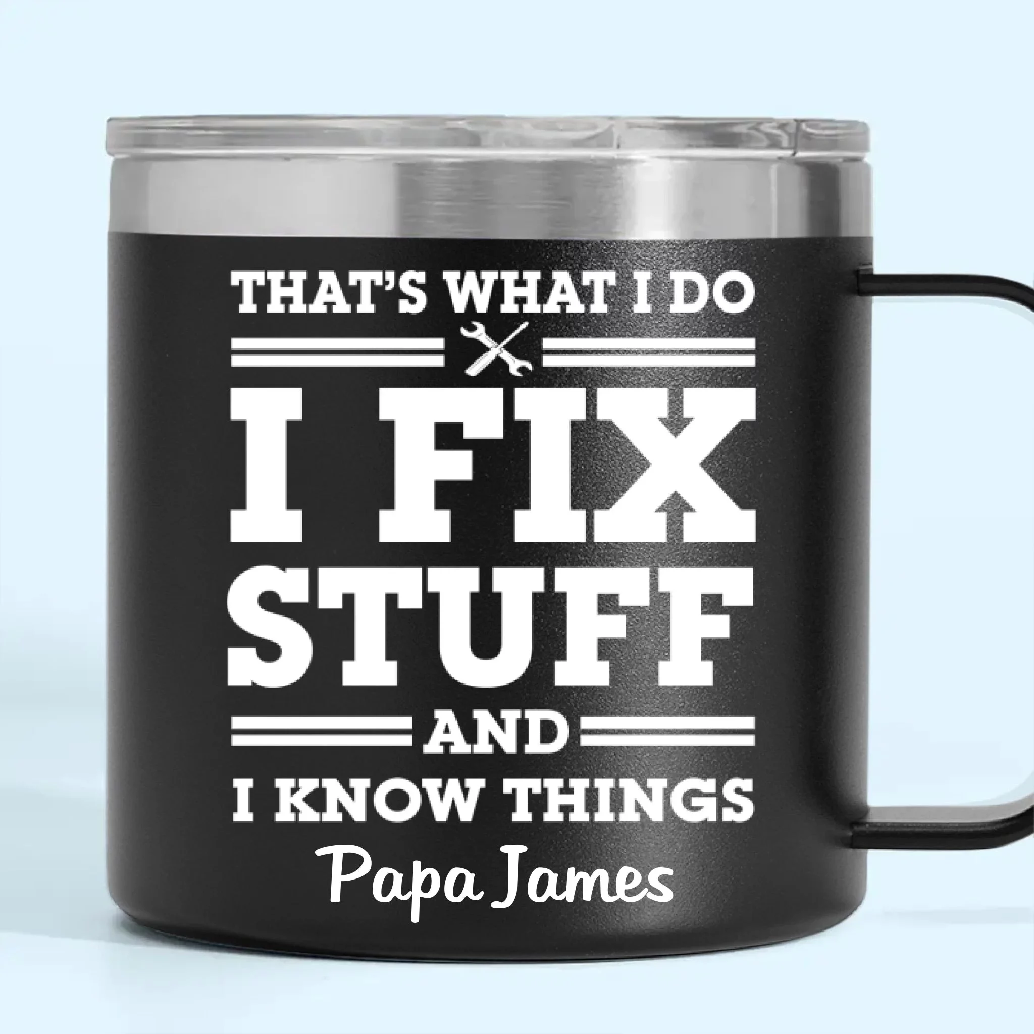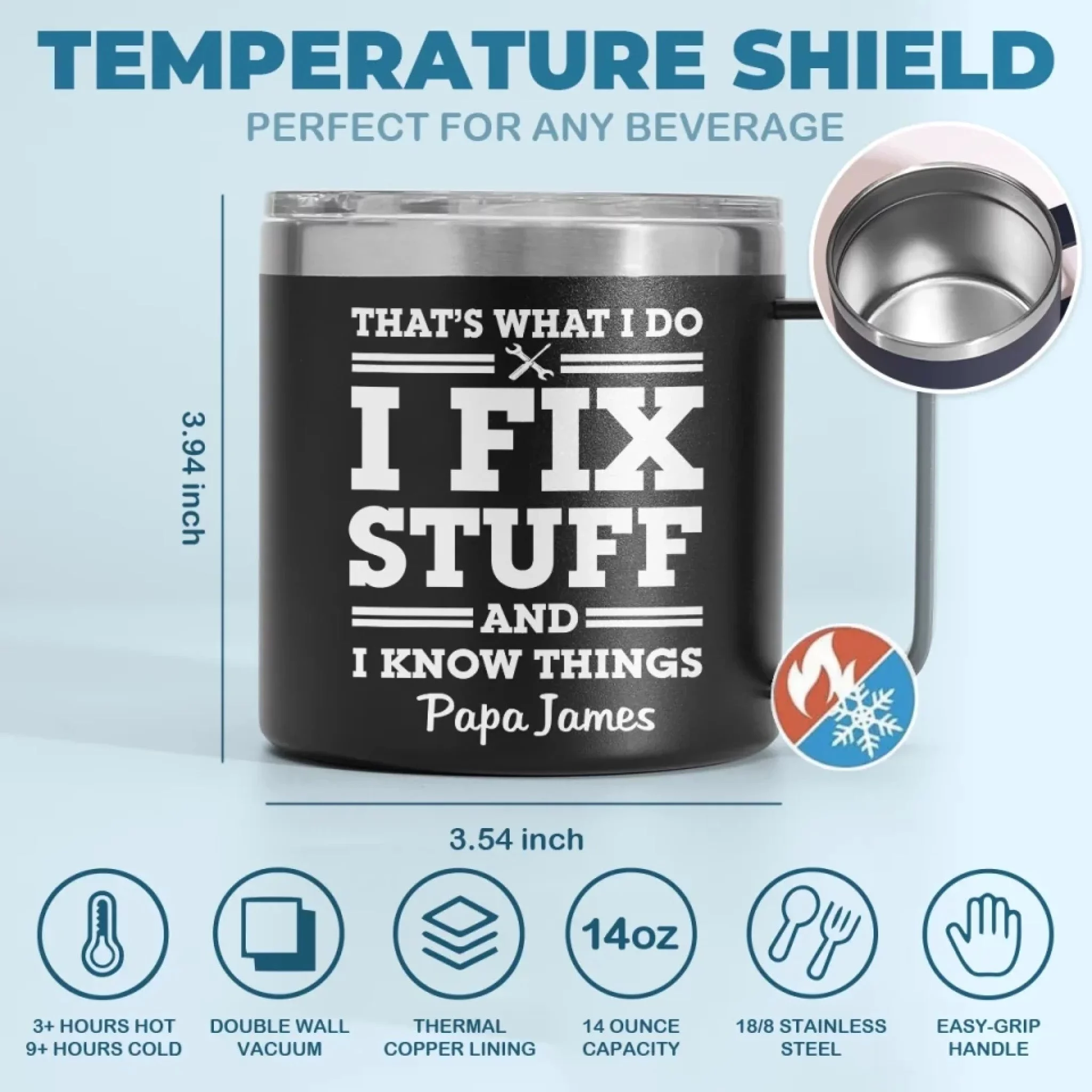 Built to Fix, Not to Fuss – Custom Personalized 14oz Stainless Steel Tumbler with Handle for Family – Honoring Dad and Grandpa This Father’s Day