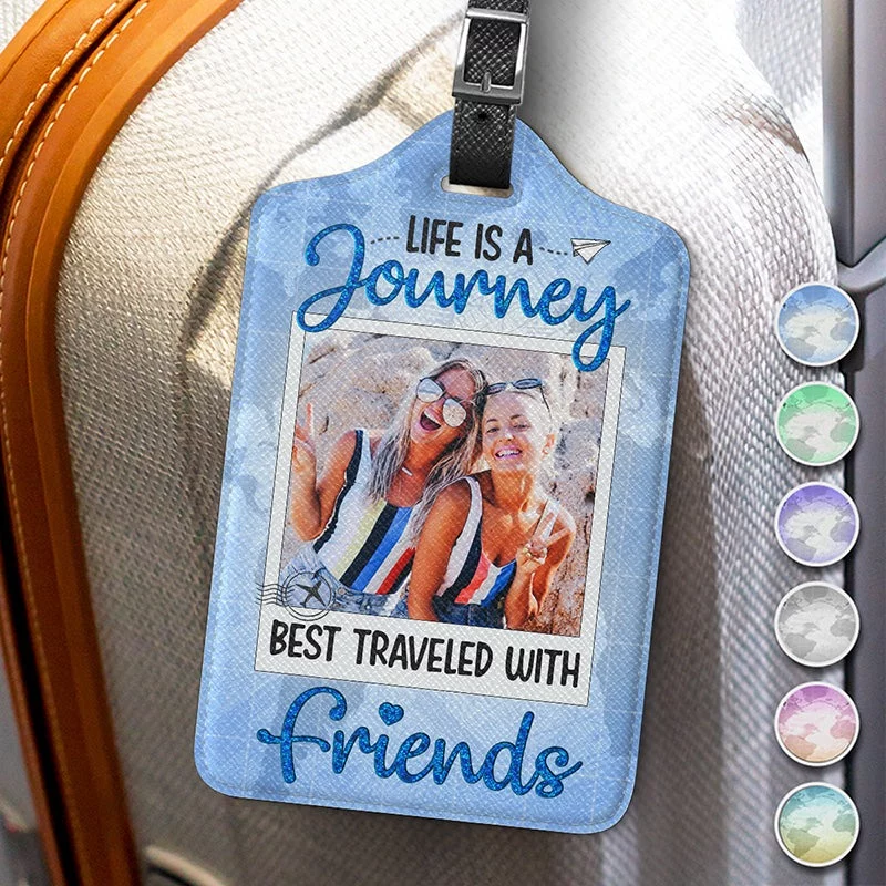Custom Photo Adventures Are Better With Friends – Customizable Travel Luggage Tag – Gift For Travel Lovers, Best Friends, Sisters