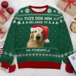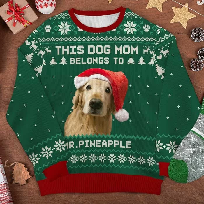 Custom Photo Proudly Owned by My Dog – Personalized Unisex Ugly Christmas Sweater, Full-Print Wool Sweatshirt, Holiday – Gift For Pet Lovers, Pet Owners, Christmas Gift