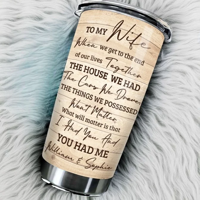 Message: “To my wife – When we get to the end of our lives together, the house we had, the cars we drove, the things we possessed won’t matter – What will matter is that I had you and you had me”.