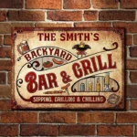 Message: “Backyard Bar & Grill – Sipping, grilling and chilling”.