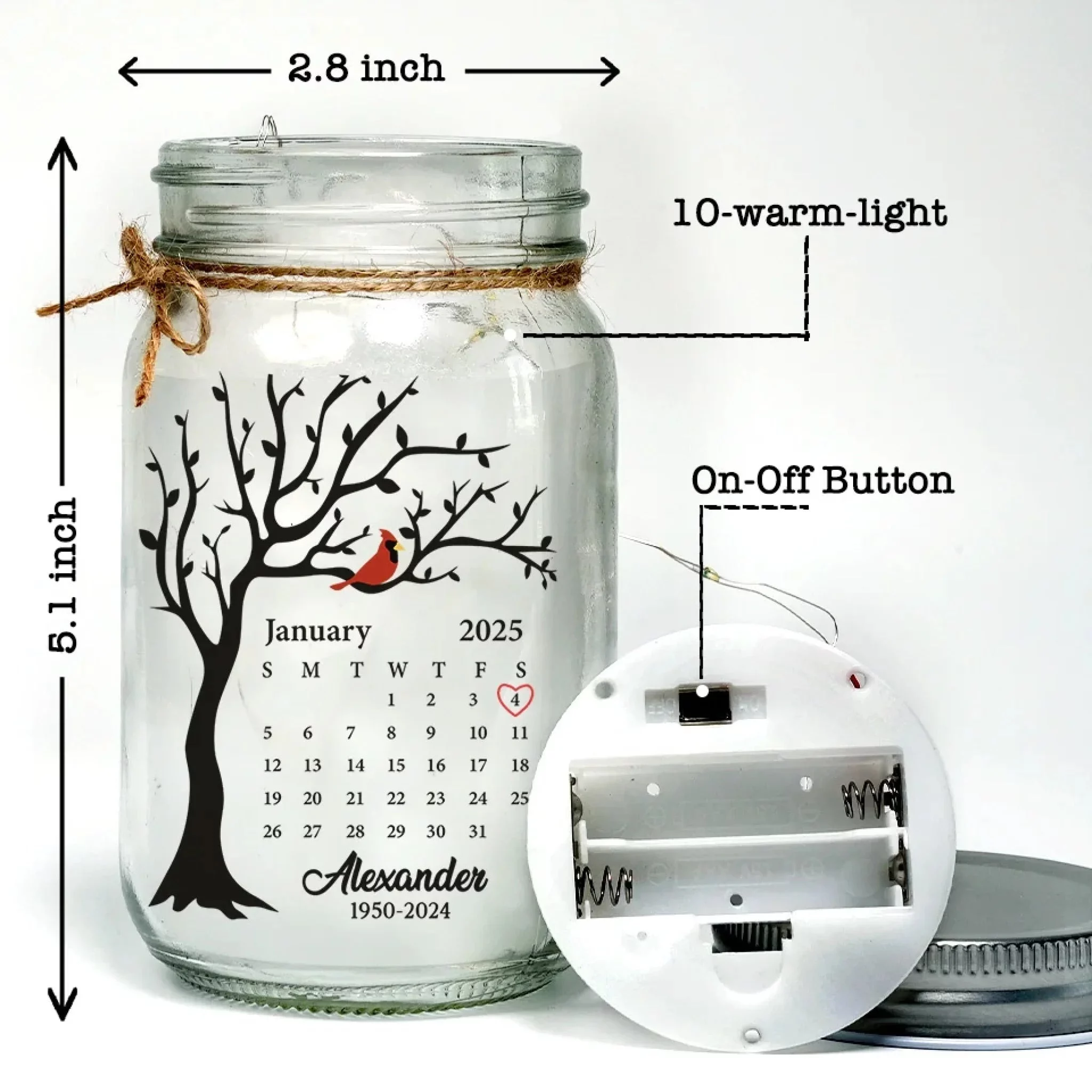 Illuminate your space with this beautifully designed mason jar light. Its soft glow creates a comforting and magical ambiance, making it an excellent decorative piece during the day and a mesmerizing light at night. A perfect and thoughtful gift to surprise your loved ones on any special occasion.