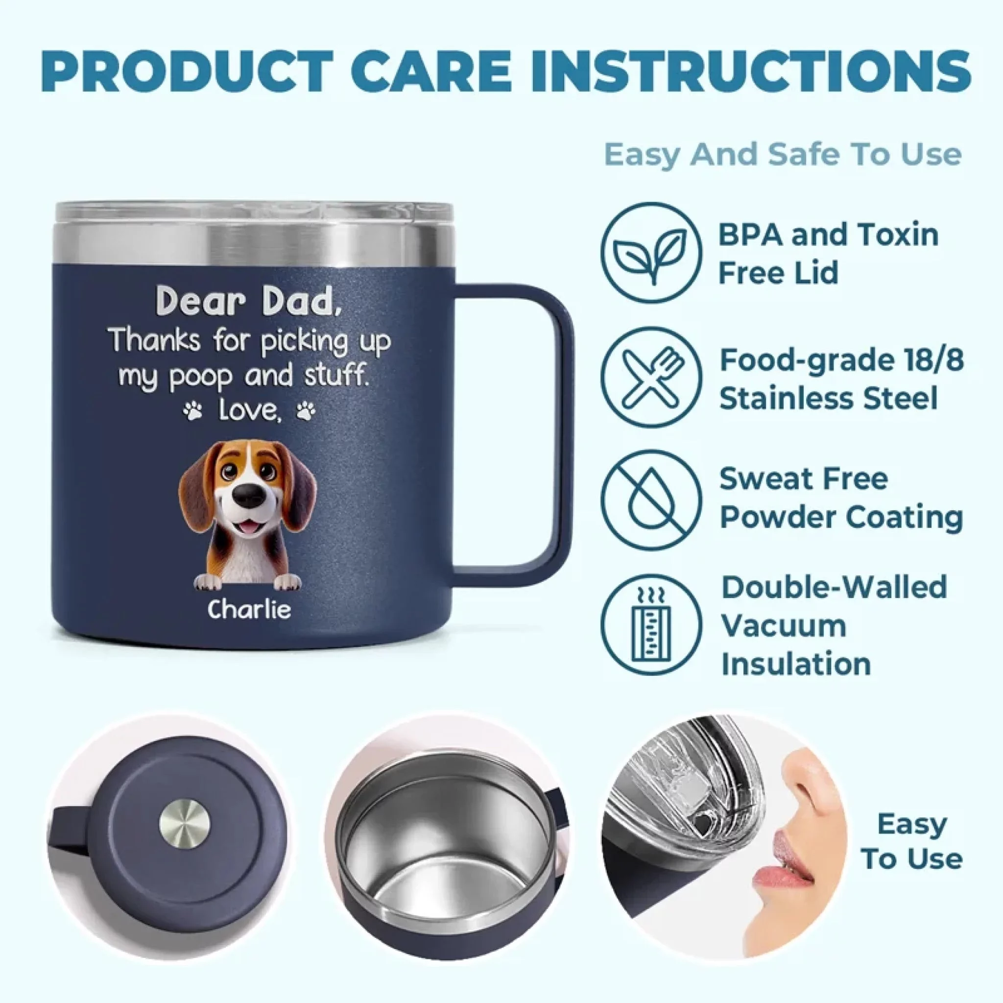 • This insulated coffee mug is rust-resistant, lead-free, easy to clean, and virtually unbreakable.