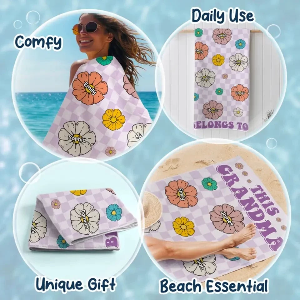 Sea Breeze, Sun-Kissed Ease – Custom Personalized Beach Towel for Family – Summer Vacation Gift, Gift For Mom, Grandma