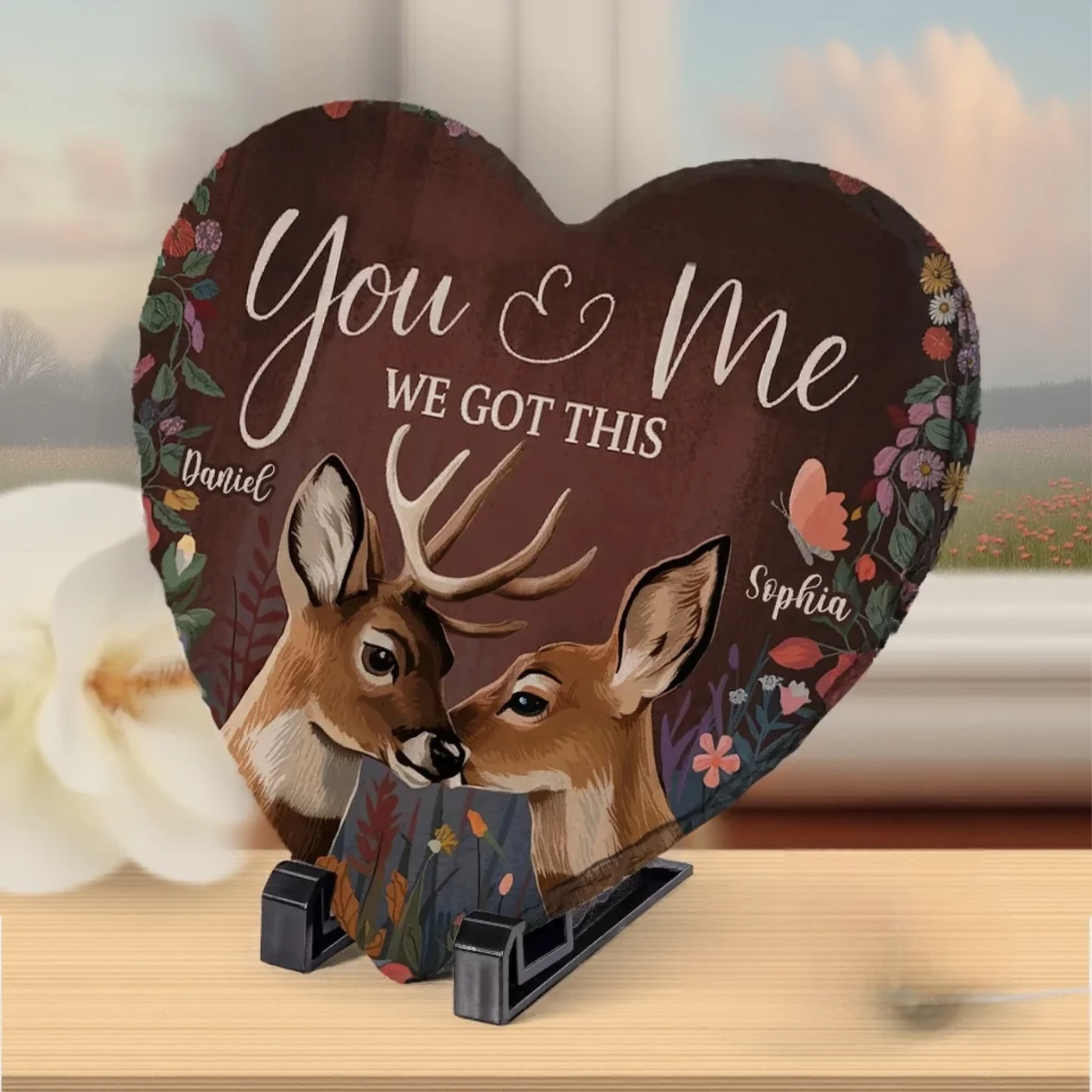 Two Souls, One Natural Bond – Custom Heart Stone with Stand – Anniversary Gift for Husband and Wife